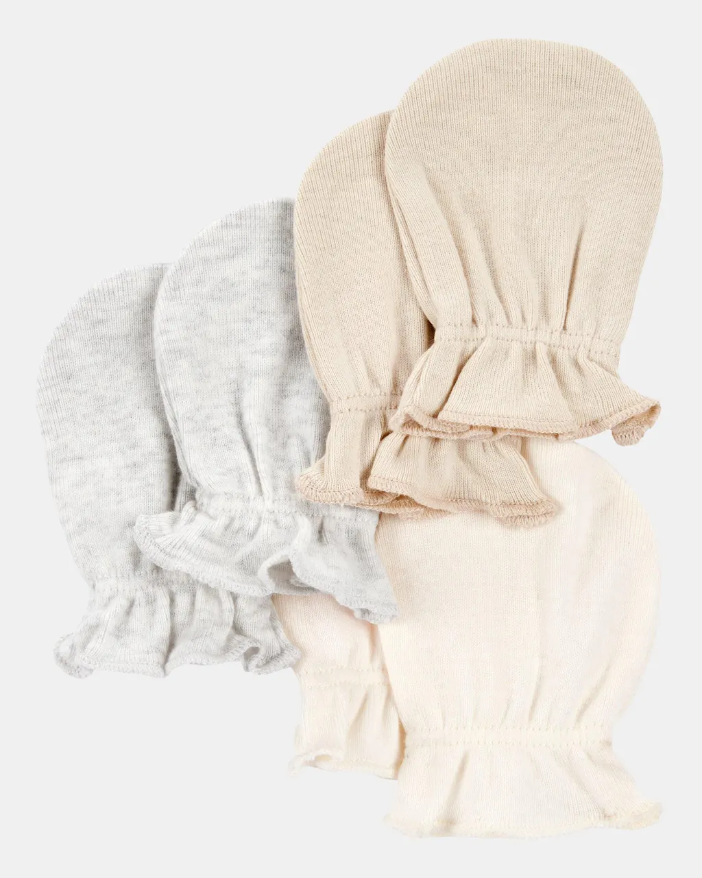 Because tiny hands have surprisingly sharp nails. These soft mitts keep babies from accidental face scratches while adding a sweet ruffle detail that actually stays put. Made from a comfy cotton blend and cozy enough for all-day wear, they're a smart grab for those early-day wiggle fests. Scratch protection never looked this stylish.SKU #197233218255