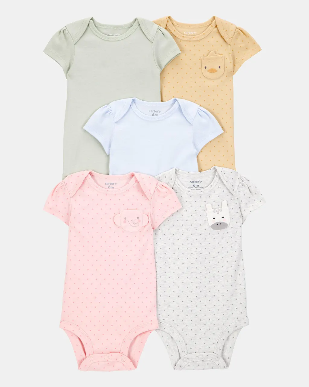 Baby Girl 5-Pack Animal Short-Sleeve Cotton Bodysuits