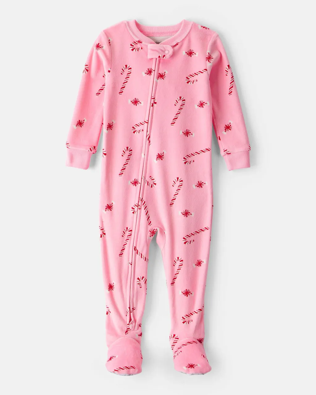 Snuggle baby up in style with this festive 1-piece PJ. Crafted in a delightfully soft blend of polyester and stretchy elastane, these cozy PJs are perfect for chilly nights, ensuring your baby drifts off to dreamland wrapped in warmth and comfort. The adorable peppermint print adds a playful flair, making bedtime feel like a festive adventure rather than a chore. Why do we love it? The loose fit design allows for easy movement, so she can wiggle and squirm freely while she dreams. Plus, the zip-front closure makes dressing a breeze for parents, transforming chaotic bedtime routines into a moment of joy. With its machine-washable fabric and certified Oeko-Tex quality, you can rest easy knowing these pajamas are not only stylish but safe for your little one. Get ready for cozy cuddles and sweet dreams!SKU # 12026441012